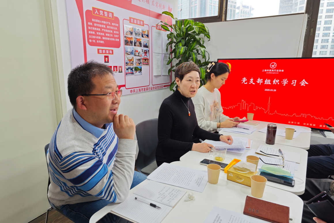 为深入贯彻中央八项规定精神,响应中共上海市工业经济联合会委员会下发的《深入贯彻中央八项规定精神学习教育实施方案》(审议稿)的要求,进一步领悟《中共中央办公厅关于在全党开展深入贯彻中央八项规定精神学习教育的通知》(中办发[2025]115号)的精神,2025年3月28日下午,上海市家具行业协会党支部在上海家协党建活动室召开了组织学习会,加强党员的思想建设和作风建设。